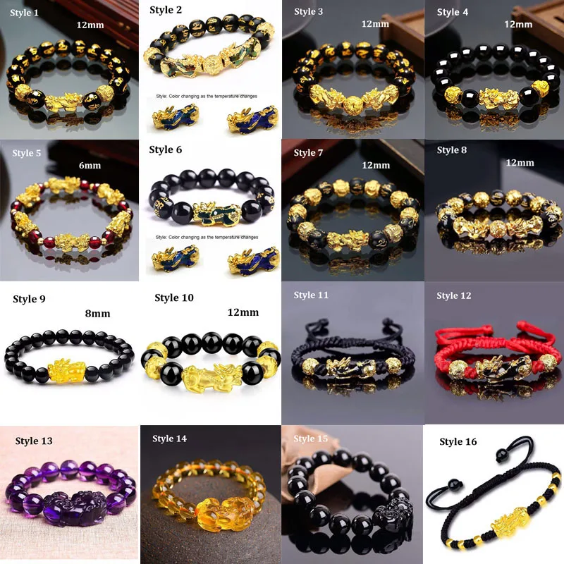 Name: Pulsera de cuentas de piedra de obsidiana de FengShui chino, brazalete con abalorios de piedra obsidiana, cambio de Color, riqueza, buena suerte, Unisex