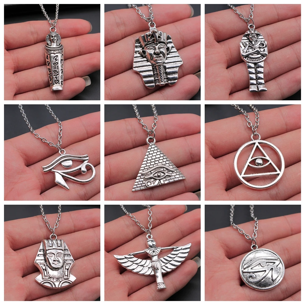 Name: Colgante con forma de cruz del Ojo de Horus para mujer y hombre, collar con forma de pirámide egipcia, Color plata antigua, regalo africano