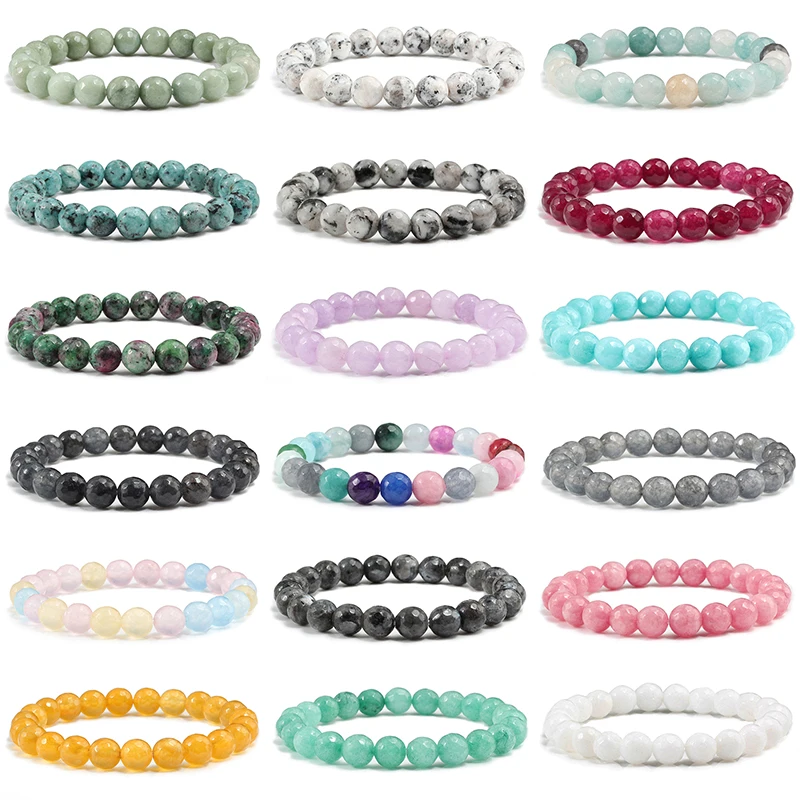 Name: Pulseras de encanto para hombres y mujeres, Pulsera de piedras facetadas de energía de curación Natural de 8mm, 18 estilos